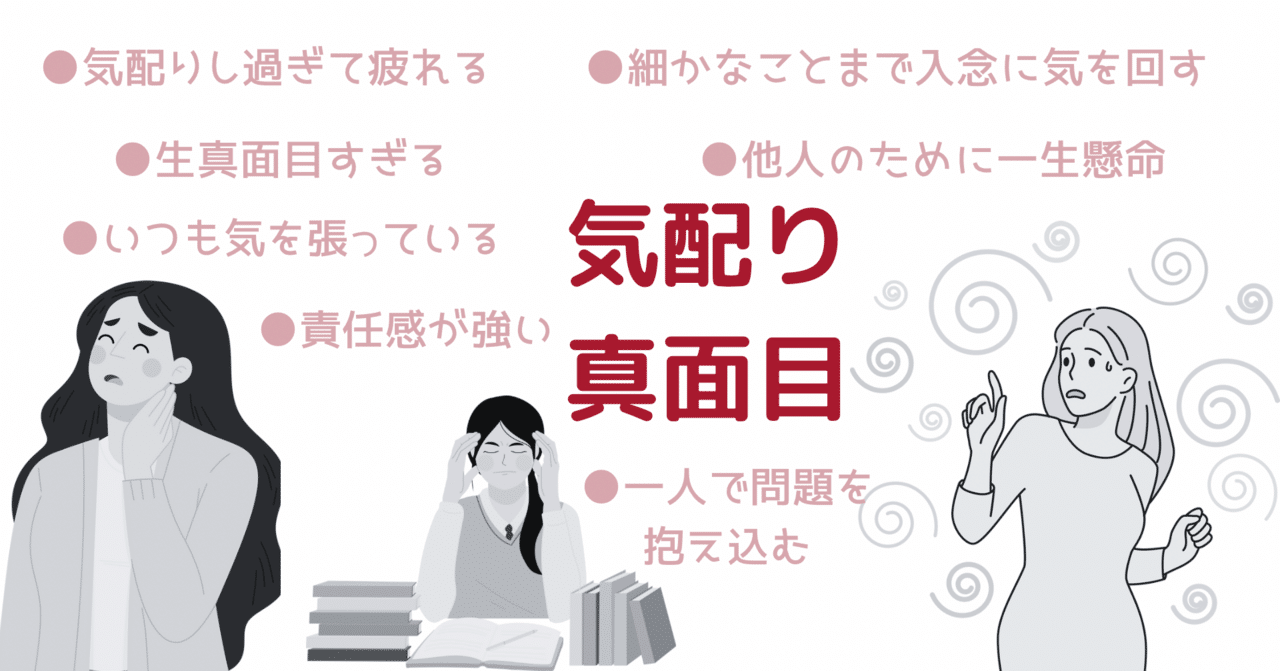 会社勤めをする日本人女性(男性も含みます)の中には、細かなことに気づき、周りに気を遣い、自分の責務に真面目過ぎるほど熱心に向き合い、本心を押し殺し他者を優先させ、状況を先回りして考えて気持ちが疲れてしまう人が一定数います。どうして私だけこんなにダメージを受けているのか、なぜ私はこんなに弱いのか、なぜこれほど疲れるのか、と悩み続け状況を打破することができないでいます。